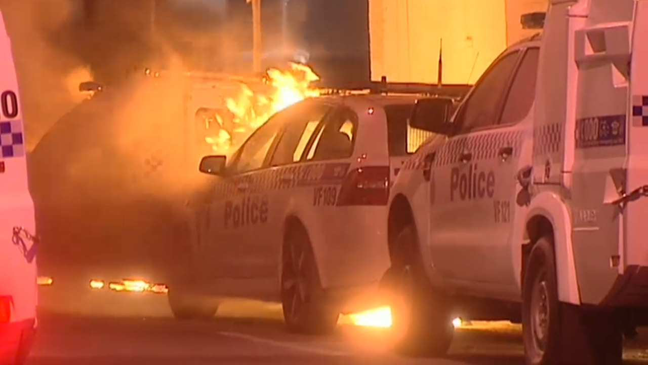 CCTV captures moment arsonist set police cars alight